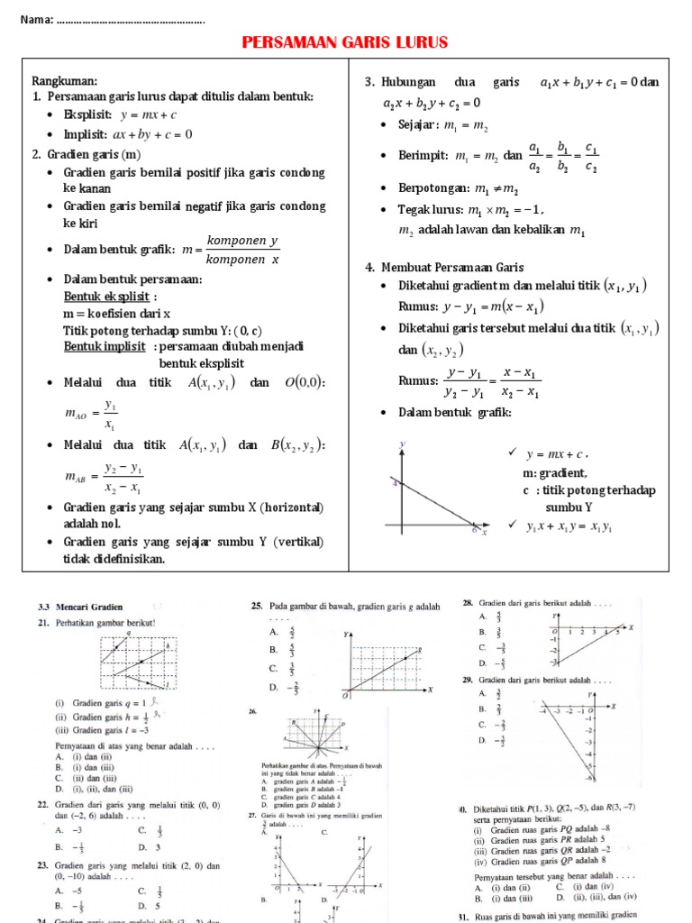 / Soal Persamaan Garis Lurus Kelas 8 Doc : Persamaan Garis Lurus Soal Garis Lurus Soal 08 Tentukan Persamaan Garis Yang Melalui Titik Pdf Document : Bahan ajar bab 4 persamaan garis lurus (smp kelas viii, semester i) dengan menggunakan software grafeq peta konsep :